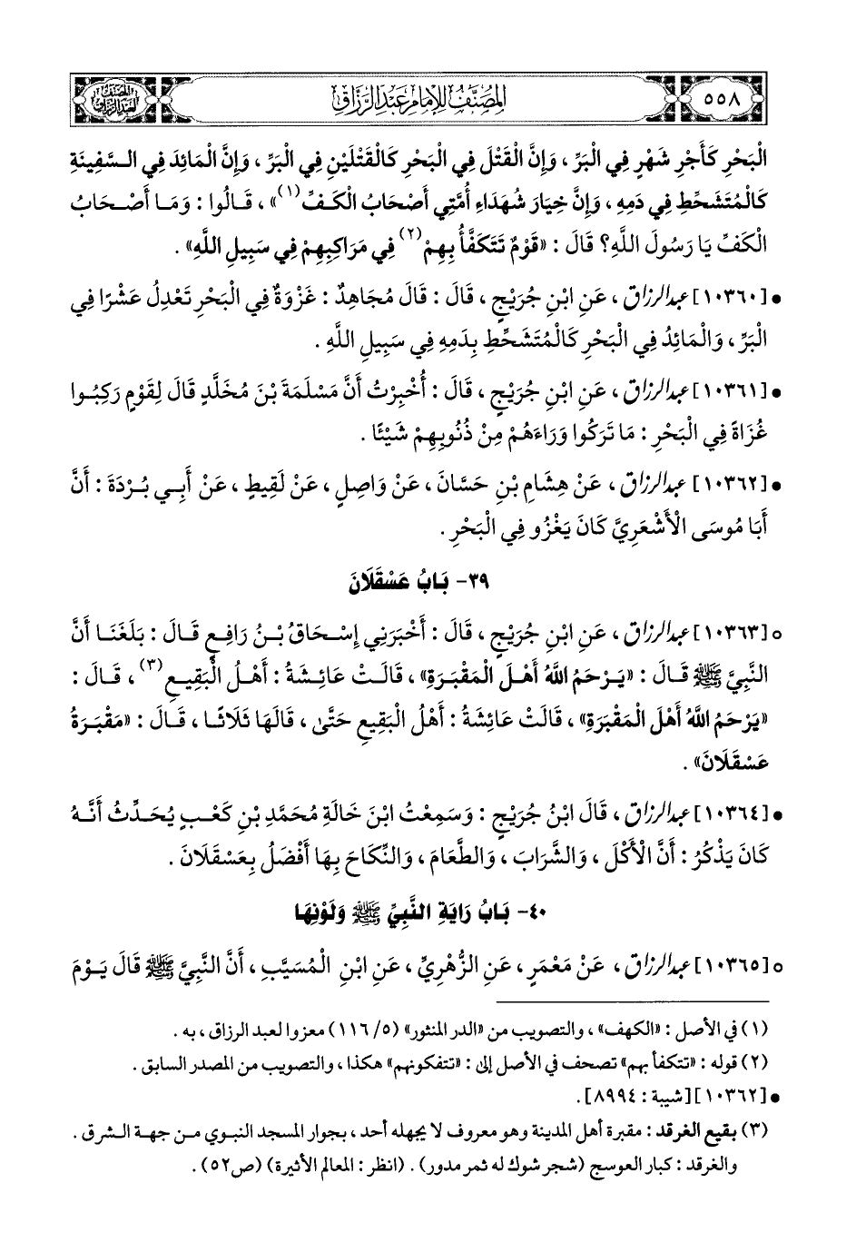 10362- عبد الرزاق، عَن هِشَامِ بْنِ حَسَّانَ، عَن وَاصِلٍ، عَن لَقِيطٍ، عَنْ أَبِي بُرْدَةَ؛ أَنَّ أَبَا مُوسَى الأَشْعَرِيَّ كَانَ يَغْزُو فِي الْبَحْرِ.