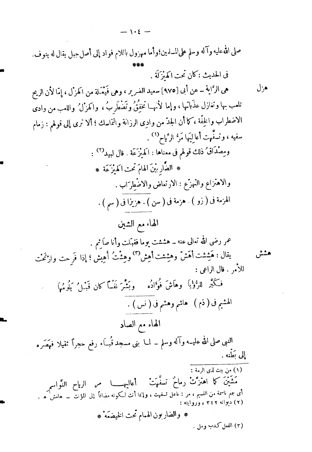 هشش عمر رَضِي الله تَعَالَى عَنهُ هششت يَوْمًا فَقبلت وَأَنا صَائِم. يُقَال: هششت أهش وهششت أهشوهشت أهيش إِذا فرحت وارتحت لِلْأَمْرِ. قَالَ الرَّاعِي: ... فَكبر للرويا وهَاشَ فُؤَادُه ... وبَشَّرَ نَفْساً كَانَ قَبْلُ يَلُومُهَا ...