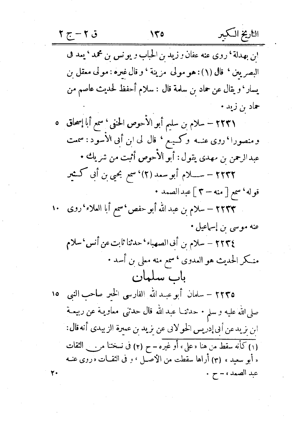 2249 - سلمان (1) ، قَالَ لنا مُوسَى حَدَّثَنَا عَبْد اللَّه بْن حسان حدثتني جدتي القلوص بنت عليبة (2) حَدَّثَنِي سلمان ابن زوجي أَنَّهُ أتى المدينة فلقي أبا هُرَيْرَةَ.