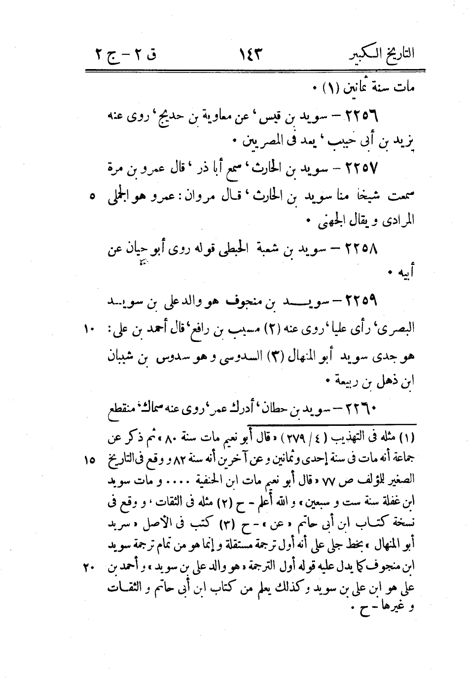 2277 - سويد بْن عُبَيْد العجلي، سَمِعَ منه أَبُو نعيم ووكيع، قَالَ عَبْد الصمد (نا) سويد العجلي صاحب القصب (4) سمع أبا موسى (5) .