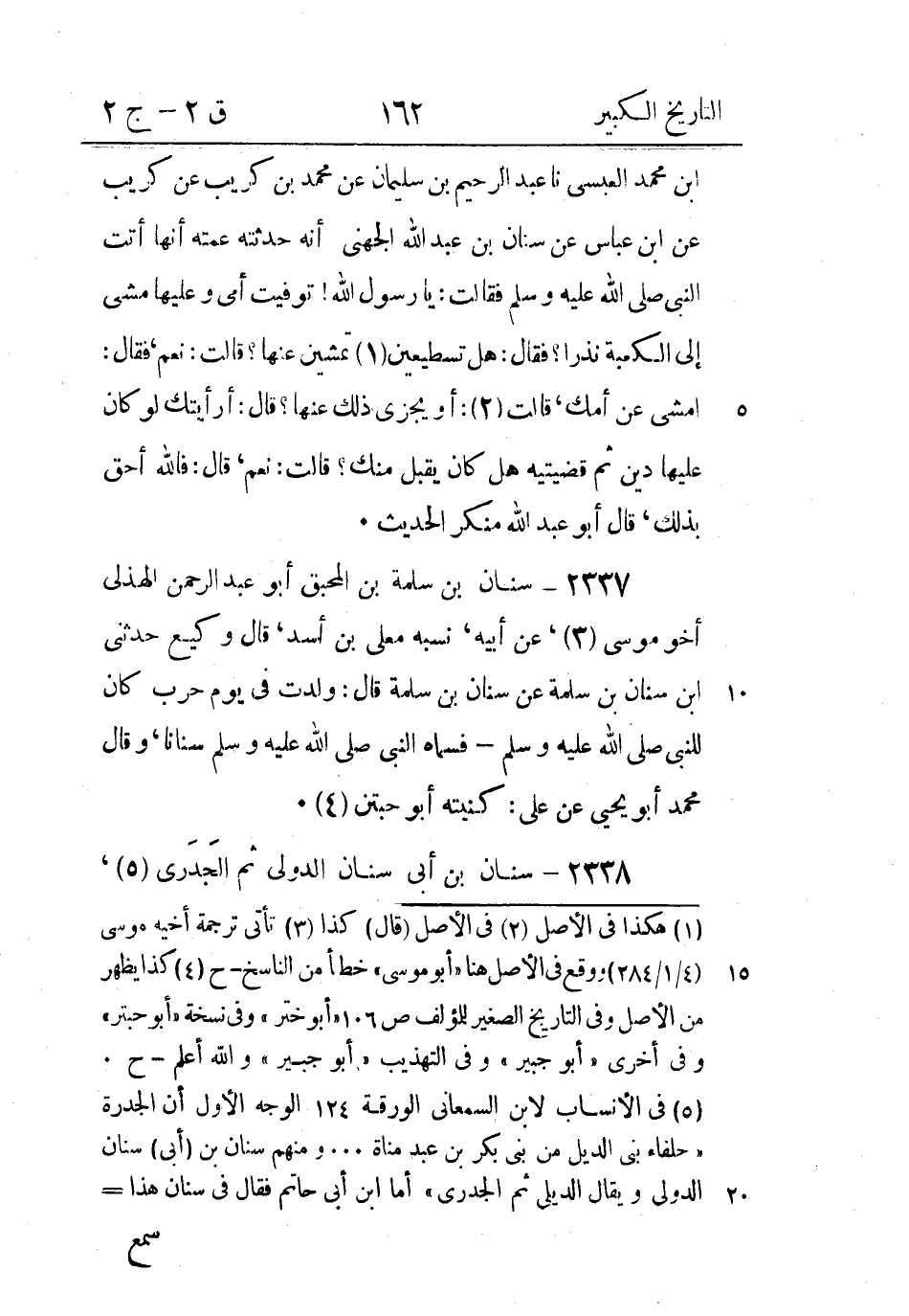 (1) زاد في الاصل " حدثني سنان " أخرى كذا - ح (2) سقط من الاصل ولابد منه وأبو أسامة هو حماد بن أسامة يروى عن جماعة منهم الثوري وعنه جماعة منهم ابنا أبي شيبة ح (3) الاسم مشتبه في الاصل كأنه " وعزرة " والظاهر " وعروة " فسنان مولى عروة وعروة مولى عمر ويعلم من ذلك أن عروة هذا غير عروة بن الزبير ووقع في الثقات " سنان مولى عروة ابن الزبير يروي عن عروة بن الزبير وكان عاملا لعمر بن عبد العزيز ... " كذا - ح (4) هكذا في كتاب ابن أبي حاتم وغيره ووقع في الاصل " أبو " خطأ وستأتي ترجمة سيف قريبا وكنية سنان هذا " أبو بشر " كما في التهذيب - ح.