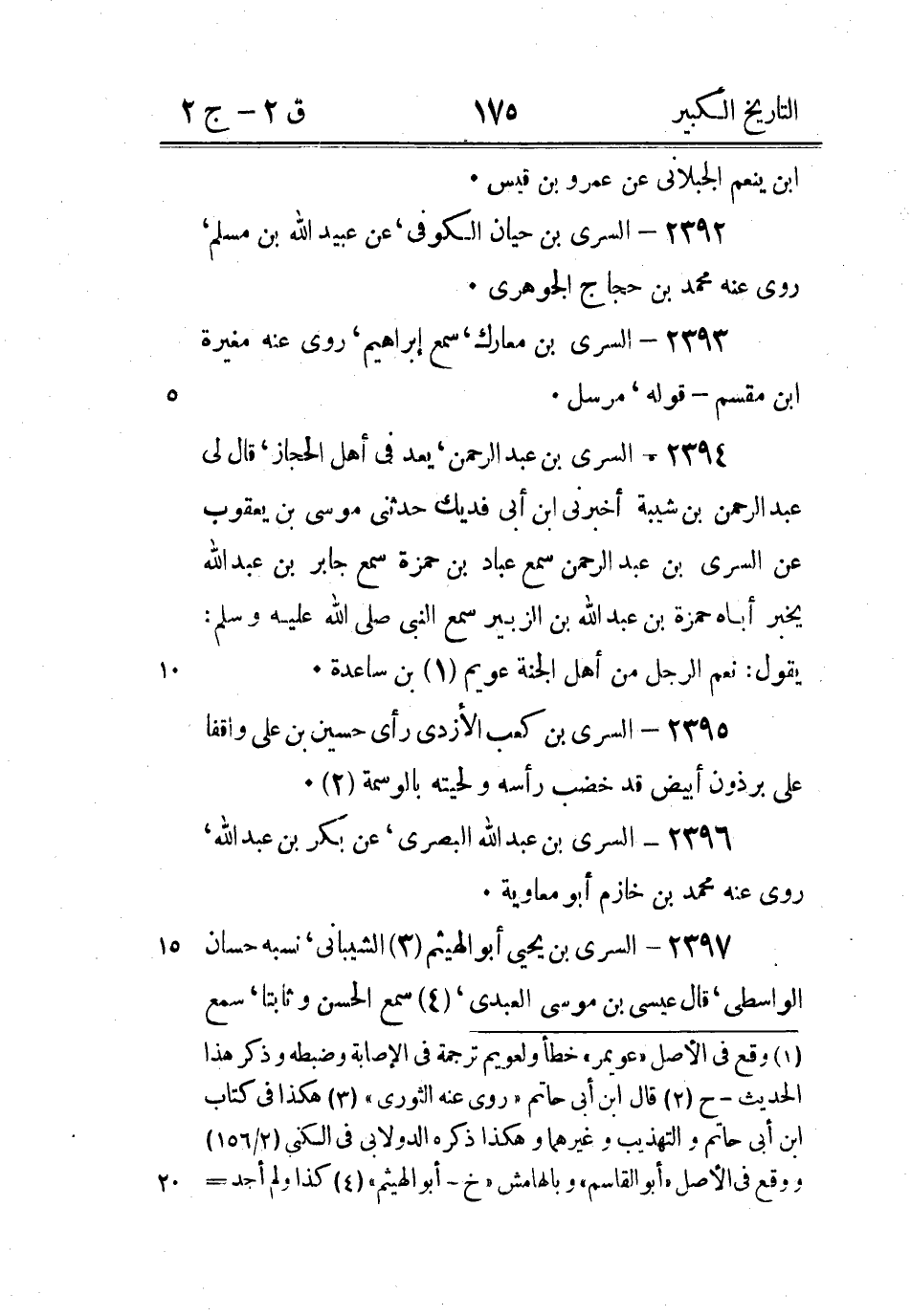 (3) المعنى كما يعرف من طريقة المؤلف رحمه الله تعالى أن حمادا روى عن هشام عن السكن ووقع في كتاب ابن أبي حاتم " روى عنه حماد بن زيد سمعت أبي يقول ذلك " أما ابن حبان فقال " سكن بن أبي خالد الاعرابي صاحب الغنم يروي عن الحسن وأبي نعامة روى عنه هشام بن حسان وقد بقي إلى أن كتب عنه قتيبة بن سعيد " فجعل هذا والآتي عقبة واحدا - ح (4) جعله ابن حبان والذي قبله واحدا كما مر وأفرده ابن أبي حاتم والله أعلم - ح.