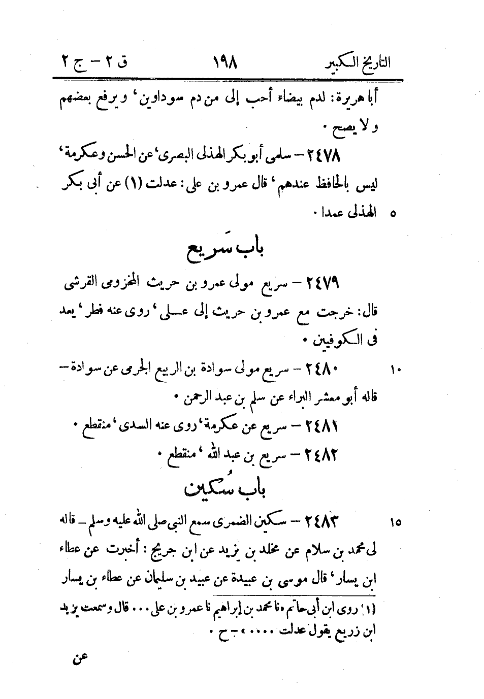 2496 - سواء، روى عَنْهُ مَعبد بْن خَالِد والمسيب بْن رافع، قَالَ الثَّوْرِيّ: هو الخزاعي، وَقَالَ حِبَّانُ حَدَّثَنَا حَمَّادُ بْنُ سَلَمَةَ أنا عَاصِمٌ عَنْ سَوَاءٍ أَخِي مُغِيثٍ الْخُزَاعِيِّ عَنْ حَفْصَةَ: كَانَ النَّبِيّ صَلَّى اللَّهُ عَلَيْهِ وَسَلَّمَ يَصُومُ الاثْنَيْنِ.