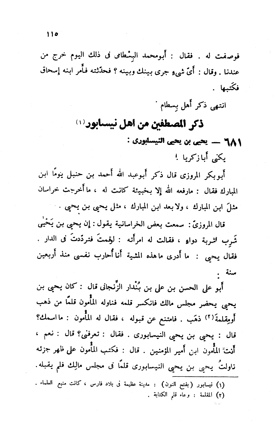 فوصفت له فقال أبو محمد البسطامي في ذلك اليوم خرج من عندنا وقال اي شيء جرى بينك وبينه فحدثته فأمر ابنه إسحاق فكتبها