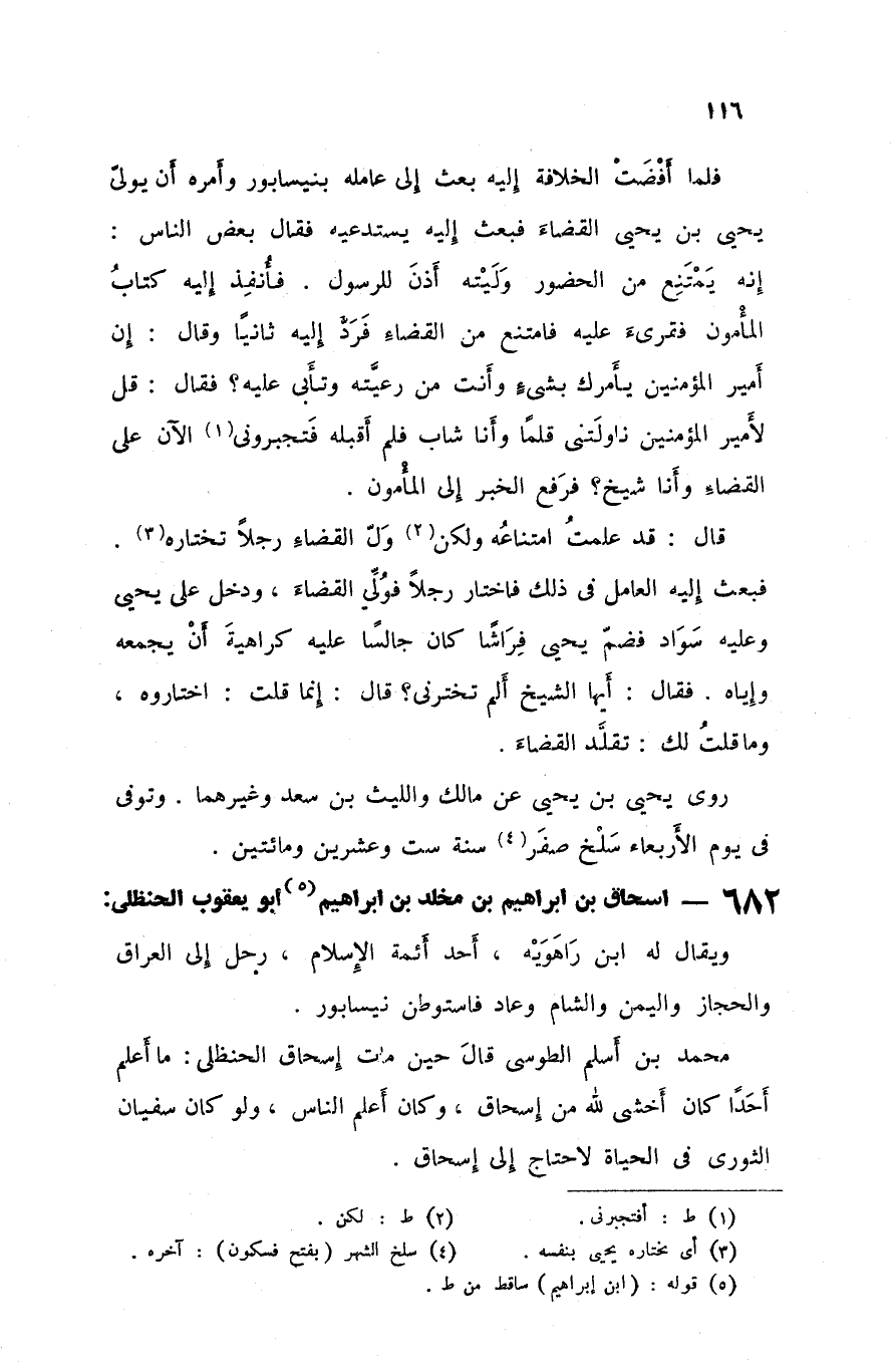 قال قد علمت امتناعه ولكن ول القضاء رجلا تختاره فبعث إليه العامل في ذلك فاختار رجلا فولي القضاء ودخل على يحيى وعليه سواد فضم يحيى فراشا كان جالسا عليه كراهية أن يجمعه وإياه فقال أيها الشيخ ألم تخترنى قال إنما قلت اختاروه وما قلت لك تقلد القضاء