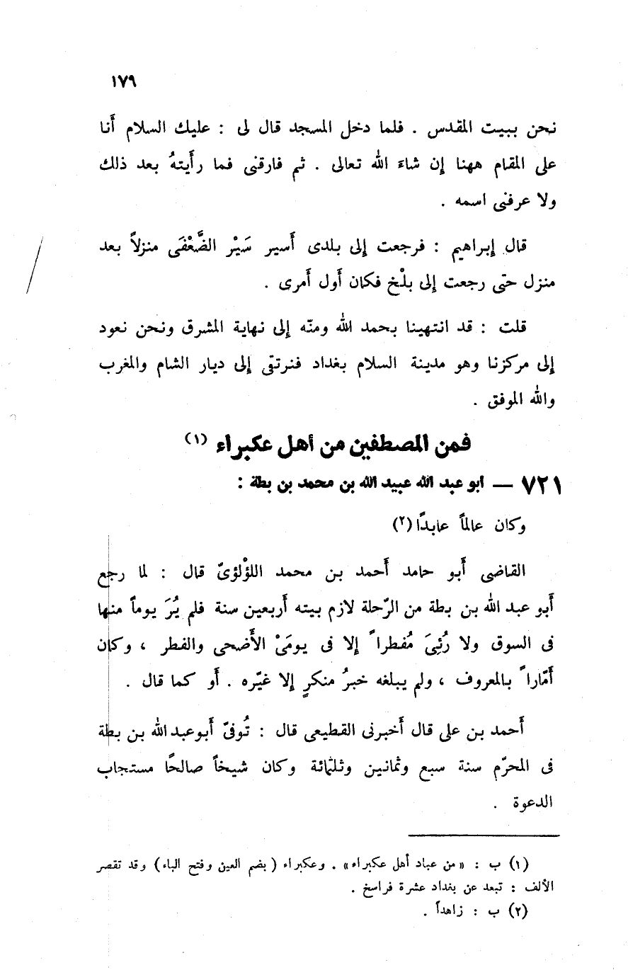 قلت قد انتهينا بحمد الله ومنه إلى نهاية المشرق و نحن نعود إلى مركزنا وهو مدينة السلام بغداد فنرتقي إلى ديار الشام و المغرب و الله الموفق فمن المصطفين من أهل عكبراء