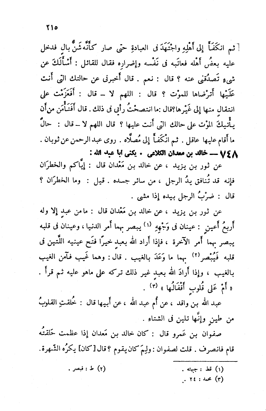748 - خالد بن معدان الكلاعي يكنى أبا عبد الله