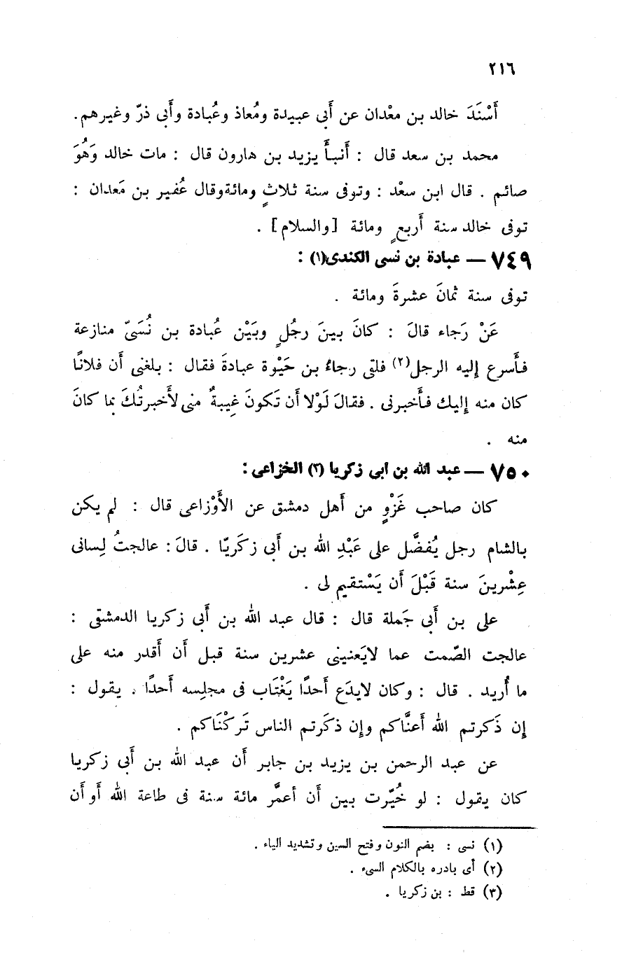 749 - عبادة بن نسى الكندي