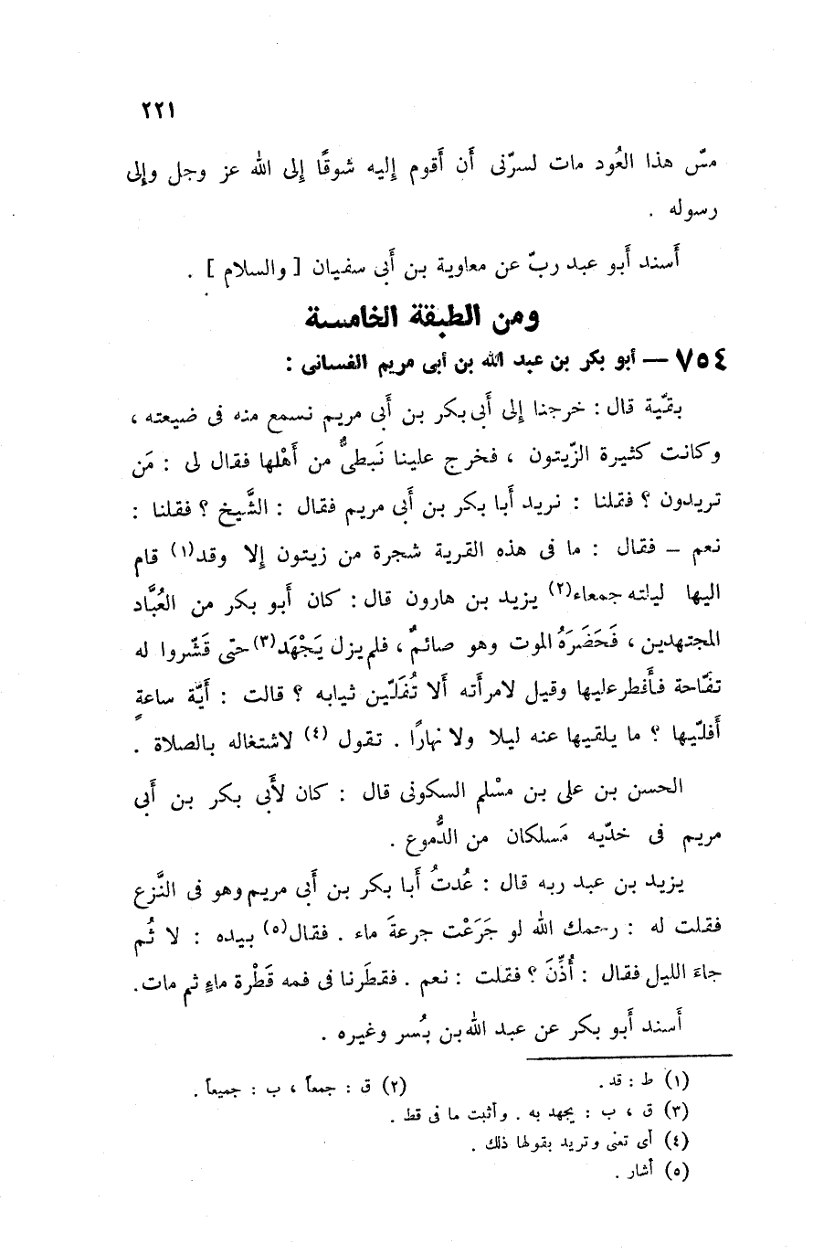 أسند أبو عبد رب عن معاوية بن أبي سفيان والسلام ومن الطبقة الخامسة