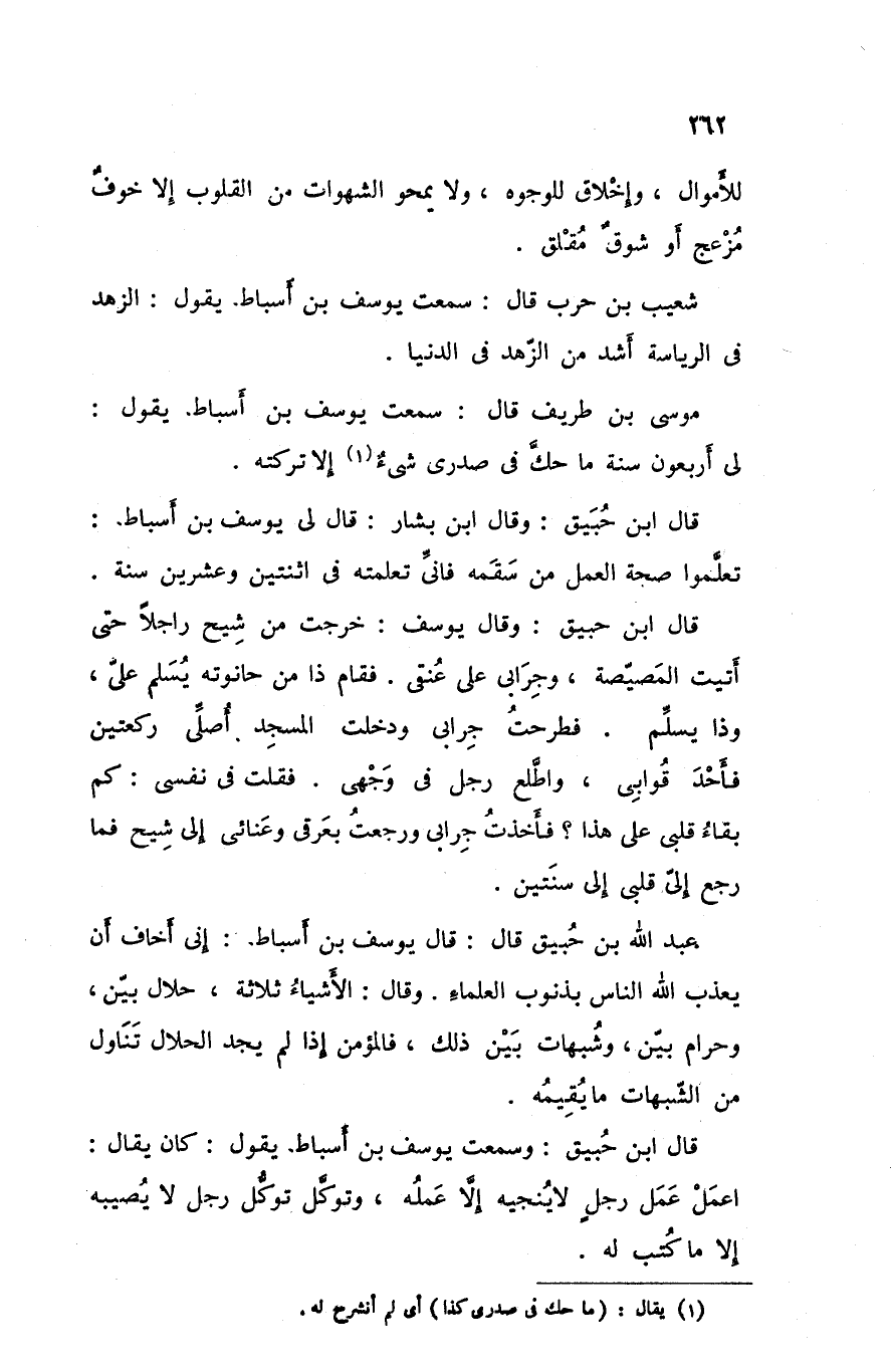شعيب بن حرب قال سمعت يوسف بن أسباط يقول الزهد في الرياسة أشد من الزهد في الدنيا