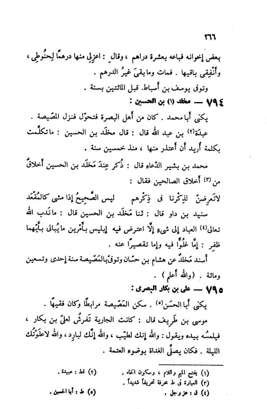 يكنى أبا محمد كان من أهل البصرة فتحول فنزل المصيصة عبدة بن عبد الله قال قال مخلد بن الحسين ما تكلمت بكلمة اريد أن أعتذر منها منذ خمسين سنة
