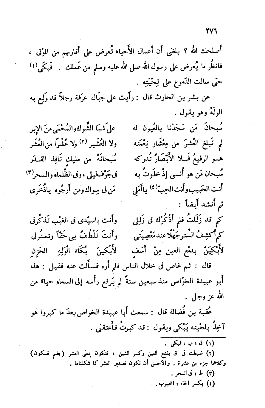 عن بشر بن الحارث قال رأيت على جبال عرفة رجلا قد ولع به الوله و هو يقول