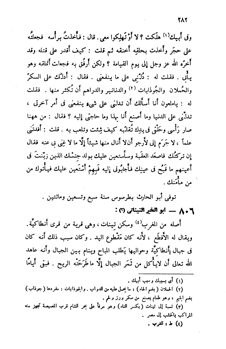 توفي أبو الحارث بطرسوس سنة سبع و تسعين و مائتين