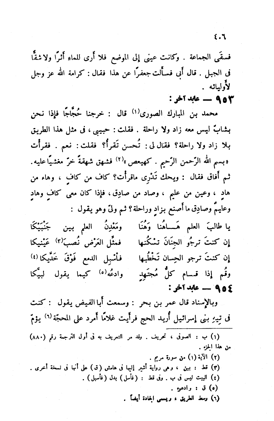 وبالإسناد قال عمر بن بحر وسمعت أبا الفيض يقول كنت فى تيه بنى إسرائيل أريد الحج فرأيت غلاما أمرد على المحجه يؤم