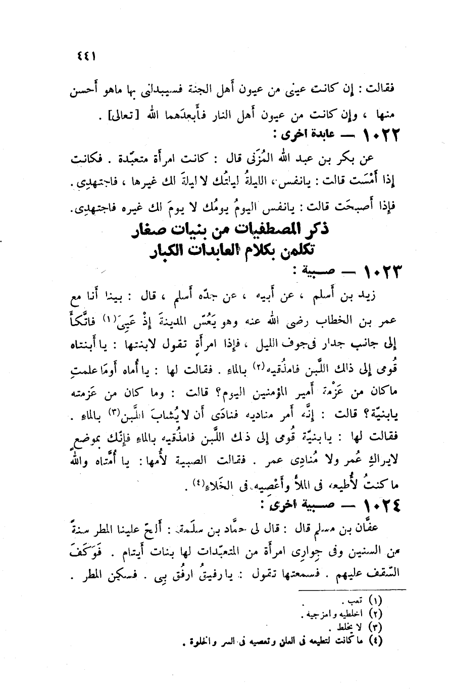 ذكر المصطفيات من بنيات صغار تكلمن بكلام العابدات الكبار