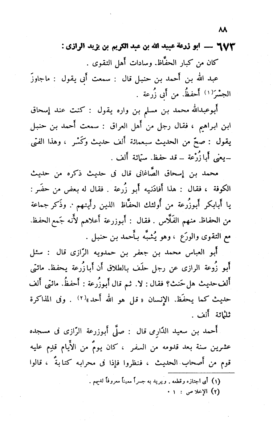 673 - أبو زرعة عبيد الله بن عبد الكريم بن يزيد الرازي