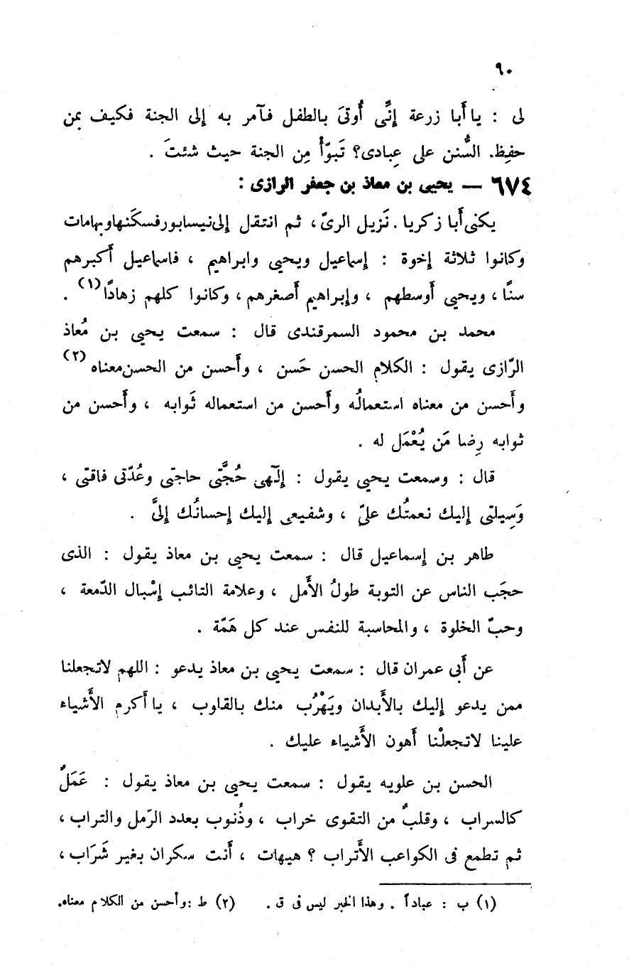 عن أبى عمران قال سمعت يحيى بن معاذ يدعو اللهم لا تجعلنا ممن يدعو إليك بالأبدان ويهرب منك بالقلوب ياأكرم الأشياء علينا لا تجعلنا أهون الأشياء عليك