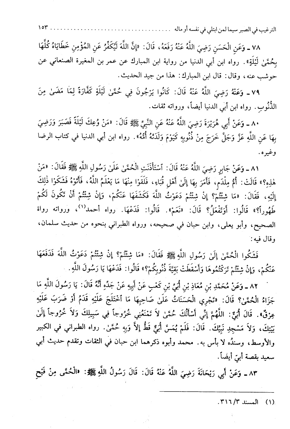 رَوَاهُ أَحْمد وَرُوَاته رُوَاة الصَّحِيح وَأَبُو يعلى وَابْن حبَان فِي صَحِيحه وَرَوَاهُ الطَّبَرَانِيّ بِنَحْوِهِ من حَدِيث سلمَان وَقَالَ فِيهِ فشكوا الْحمى إِلَى رَسُول الله صلى الله عَلَيْهِ وَسلم فَقَالَ مَا شِئْتُم إِن شِئْتُم دَعَوْت الله فَدَفعهَا عَنْكُم وَإِن شِئْتُم تَرَكْتُمُوهَا وأسقطت بَقِيَّة ذنوبكم قَالُوا فدعها يَا رَسُول الله