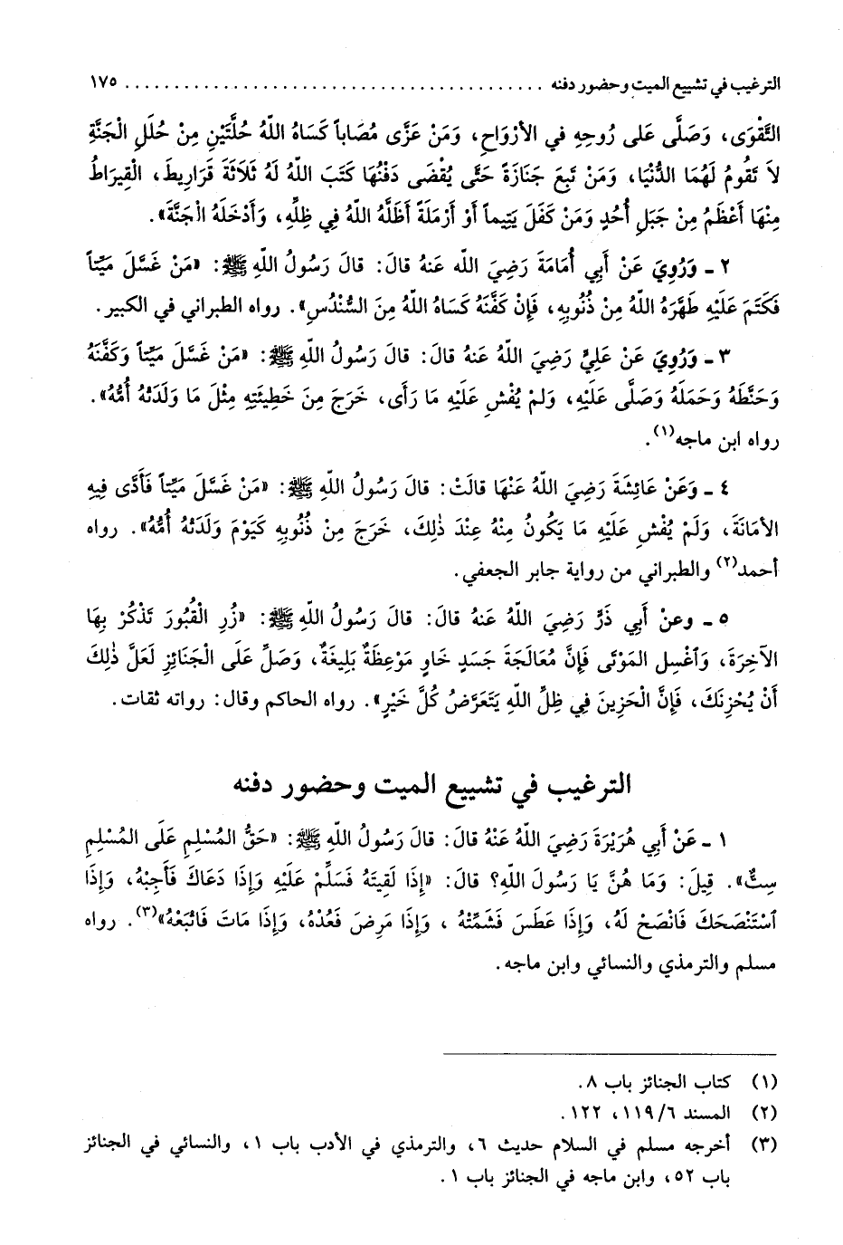 5306 - وَرُوِيَ عَن أبي أُمَامَة رَضِي الله عَنهُ قَالَ قَالَ رَسُول الله صلى الله عَلَيْهِ وَسلم من غسل مَيتا فكتم عَلَيْهِ طهره الله من ذنُوبه فَإِن كَفنه كَسَاه الله من السندس