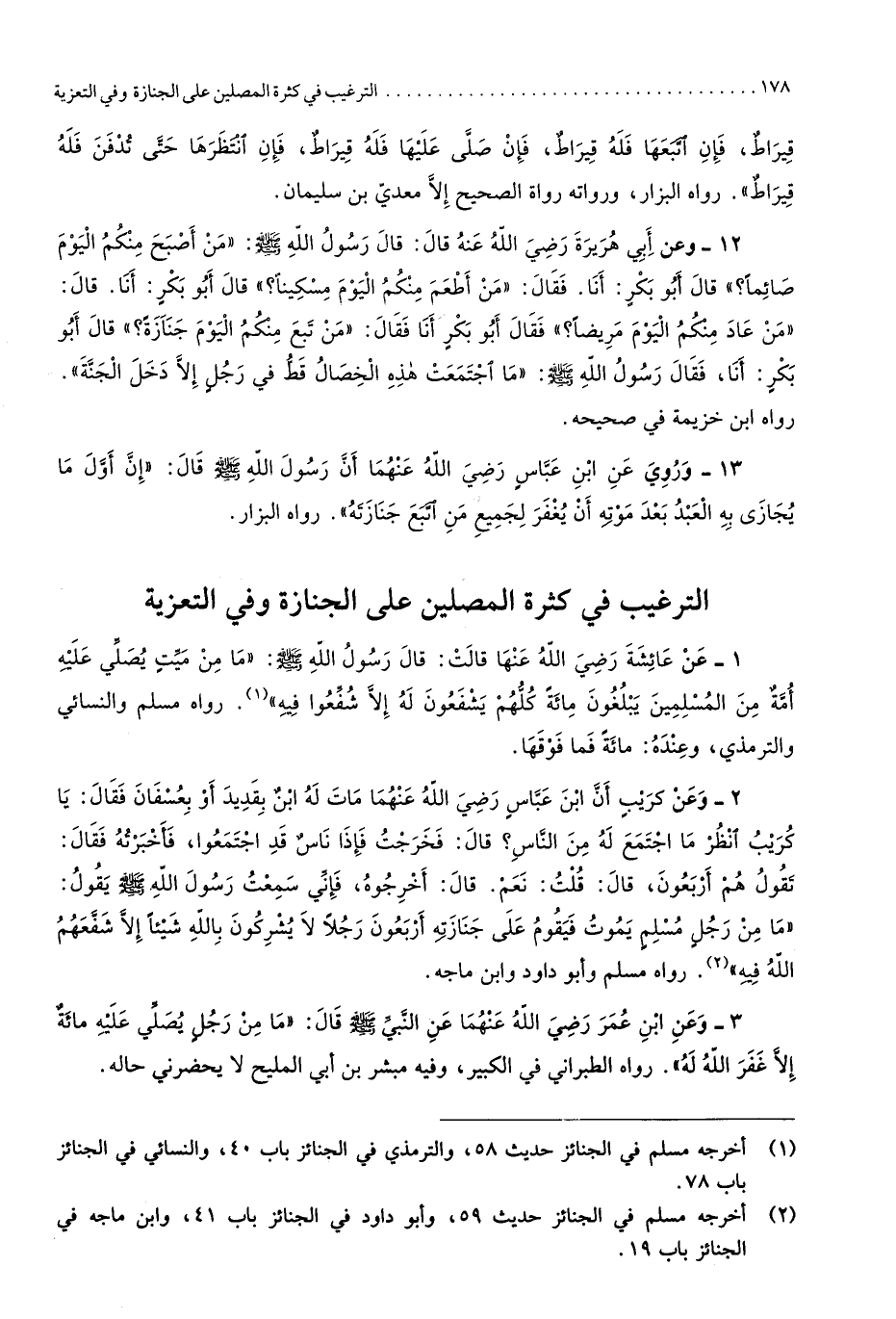 14 - التَّرْغِيب فِي كَثْرَة الْمُصَلِّين على الْجِنَازَة وَفِي التَّعْزِيَة