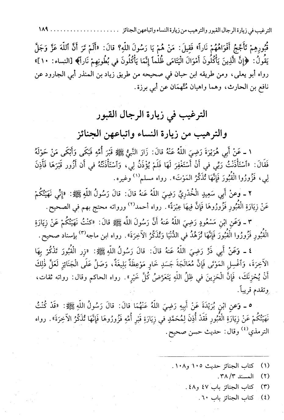 5373 - عَن أبي هُرَيْرَة رَضِي الله عَنهُ قَالَ زار النَّبِي صلى الله عَلَيْهِ وَسلم قبر أمه فَبكى وأبكى من حوله فَقَالَ اسْتَأْذَنت رَبِّي فِي أَن أسْتَغْفر لَهَا فَلم يُؤذن لي واستأذنته فِي أَن أَزور قبرها فَأذن لي فزوروا الْقُبُور فَإِنَّهَا تذكر الْمَوْت