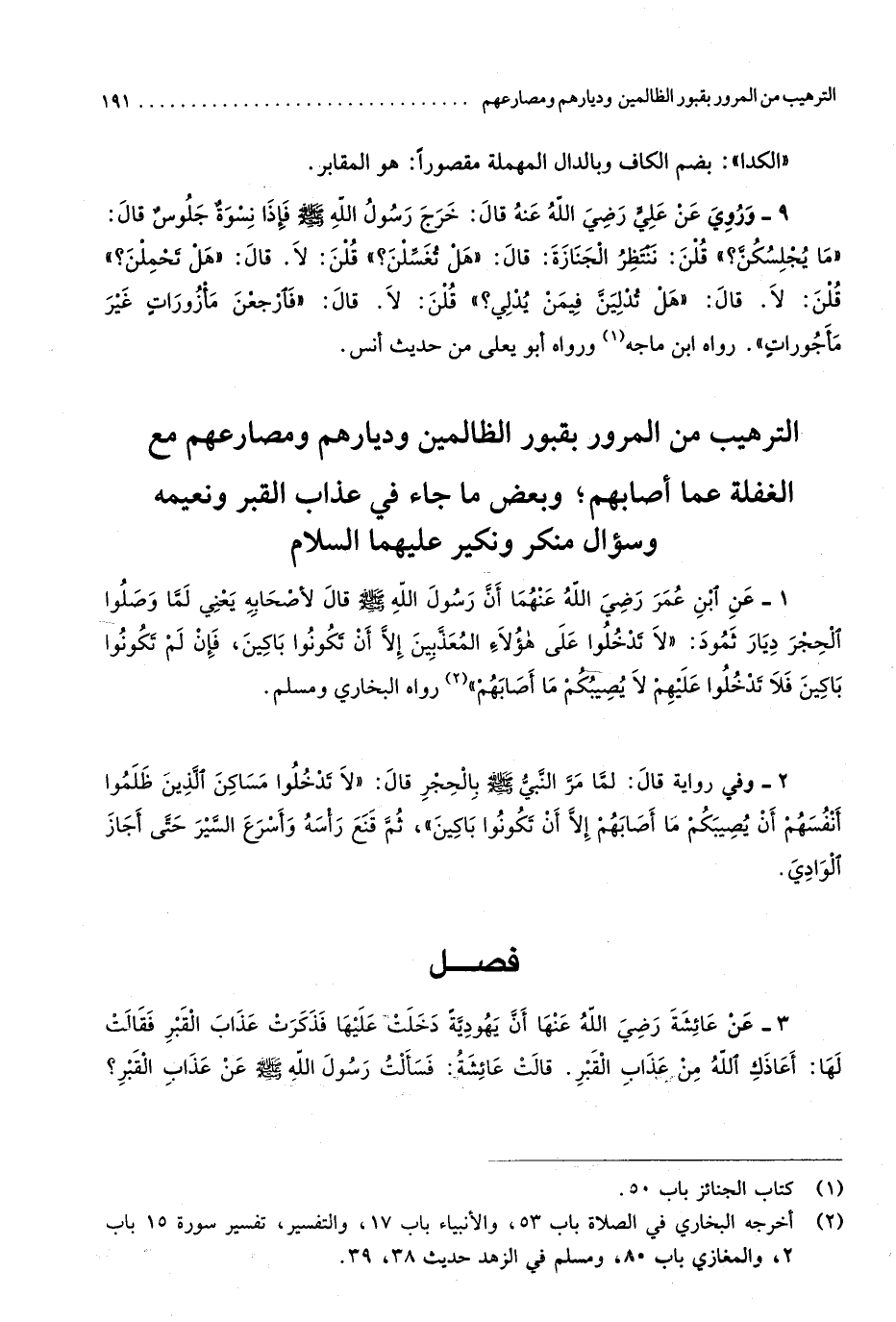 5382 - عَن ابْن عمر رَضِي الله عَنْهُمَا أَن رَسُول الله صلى الله عَلَيْهِ وَسلم قَالَ لأَصْحَابه يَعْنِي لما وصلوا الْحجر ديار ثَمُود لَا تدْخلُوا على هَؤُلَاءِ الْمُعَذَّبين إِلَّا أَن تَكُونُوا بَاكِينَ فَإِن لم تَكُونُوا بَاكِينَ فَلَا تدْخلُوا عَلَيْهِم لَا يُصِيبكُم مَا أَصَابَهُم رَوَاهُ البُخَارِيّ وَمُسلم
