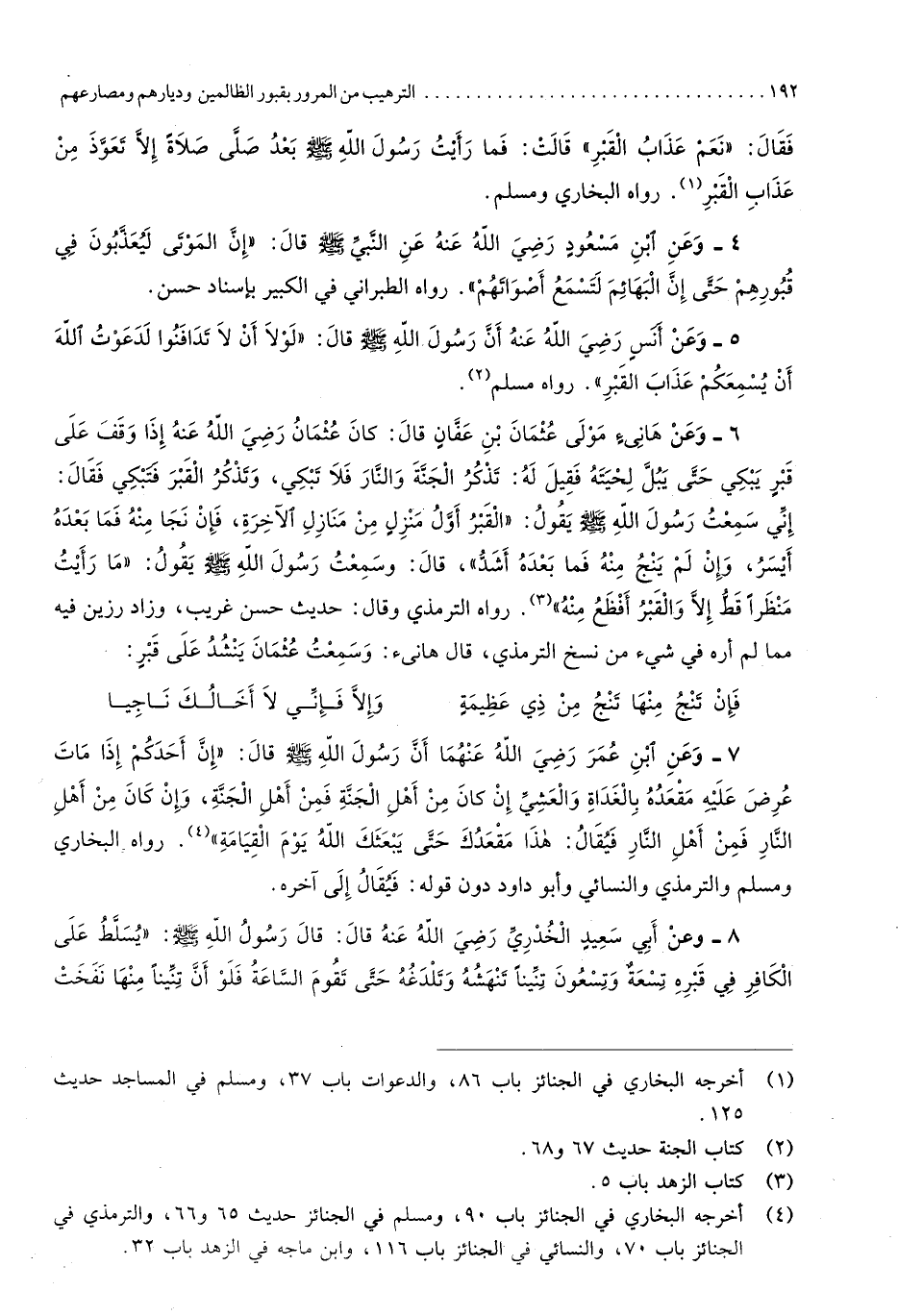 رَوَاهُ التِّرْمِذِيّ وَقَالَ حَدِيث حسن غَرِيب وَزَاد رزين فِيهِ مِمَّا لم أره فِي شَيْء من نسخ التِّرْمِذِيّ قَالَ هانىء وَسمعت عُثْمَان ينشد على قبر فَإِن تنج مِنْهَا تنج من ذِي عَظِيمَة وَإِلَّا فَإِنِّي لَا أخالك