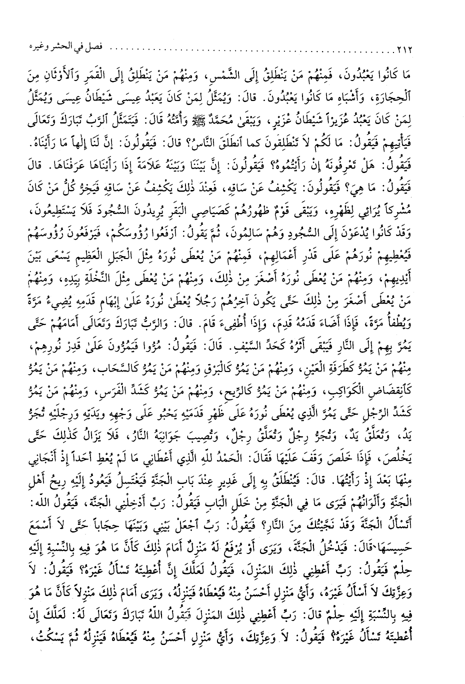 قَالَ والرب تبَارك وَتَعَالَى أمامهم حَتَّى يمر بهم إِلَى النَّار فَيبقى أَثَره كَحَد السَّيْف