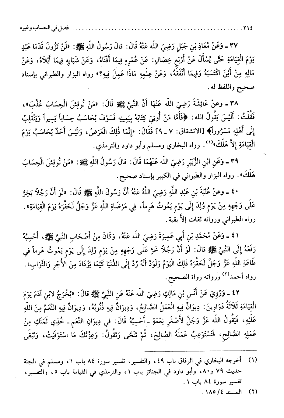 5449 - وَرُوِيَ عَن أنس بن مَالك رَضِي الله عَنهُ عَن النَّبِي صلى الله عَلَيْهِ وَسلم قَالَ يخرج لِابْنِ آدم يَوْم الْقِيَامَة ثَلَاثَة دواوين ديوَان فِيهِ الْعَمَل الصَّالح وديوان فِيهِ ذنُوبه وديوان فِيهِ النعم من الله عَلَيْهِ فَيَقُول الله عز وَجل لأصغر نعْمَة أَحْسبهُ قَالَ فِي ديوَان النعم خذي ثمنك من عمله الصَّالح فتستوعب عمله الصَّالح ثمَّ تنحى وَتقول وَعزَّتك مَا استوفيت وَتبقى