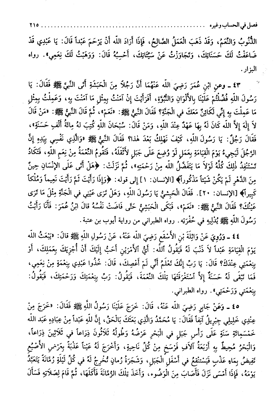 5451 - وَرُوِيَ عَن وَاثِلَة بن الْأَسْقَع رَضِي الله عَنهُ عَن رَسُول الله صلى الله عَلَيْهِ وَسلم قَالَ يبْعَث الله يَوْم الْقِيَامَة عبدا لَا ذَنْب لَهُ فَيَقُول الله أَي الْأَمريْنِ أحب إِلَيْك أَن أجزيك بعملك أَو بنعمتي عنْدك قَالَ يَا رب إِنَّك تعلم أَنِّي لم أعصك قَالَ خُذُوا عَبدِي بِنِعْمَة من نعمي فَمَا تبقى لَهُ حَسَنَة إِلَّا استغرقتها تِلْكَ النِّعْمَة فَيَقُول رب بنعمتك ورحمتك فَيَقُول بنعمتي ورحمتي