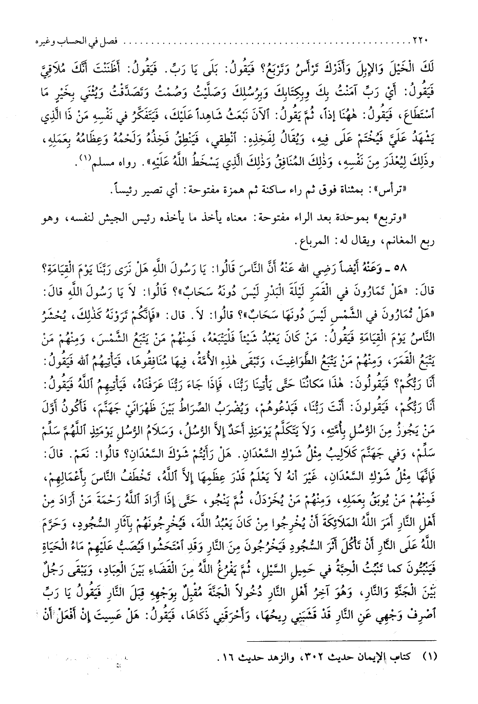 لَك الْخَيل وَالْإِبِل وأذرك ترأس وتربع فَيَقُول بلَى يَا رب فَيَقُول أظننت أَنَّك ملاقي فَيَقُول لَا فَيَقُول إِنِّي أنساك كَمَا نسيتني ثمَّ يلقى الثَّالِث فَيَقُول أَي فل ألم أكرمك وأسودك وأزوجك وأسخر لَك الْخَيل وَالْإِبِل وأذرك ترأس وتربع فَيَقُول بلَى يَا رب