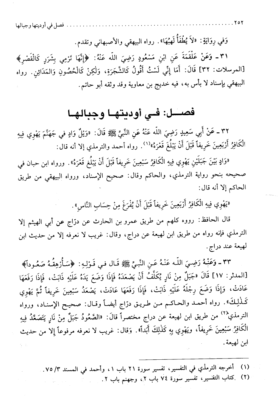 5556 - وَعنهُ رَضِي الله عَنهُ عَن النَّبِي صلى الله عَلَيْهِ وَسلم قَالَ فِي قَوْله سَأُرْهِقُهُ صعُودًا المدثر 71 قَالَ جبل من نَار يُكَلف أَن يَصْعَدهُ فَإِذا وضع يَده عَلَيْهِ ذَابَتْ فَإِذا رَفعهَا عَادَتْ وَإِذا وضع رجله عَلَيْهِ ذَابَتْ فَإِذا رَفعهَا عَادَتْ يصعد سبعين خَرِيفًا ثمَّ يهوي كَذَلِك