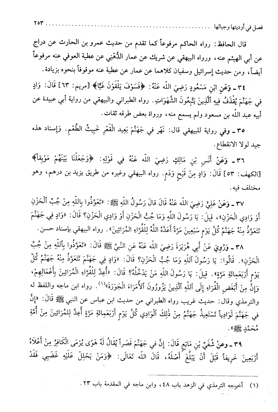 رَوَاهُ ابْن مَاجَه وَاللَّفْظ لَهُ وَالتِّرْمِذِيّ وَقَالَ حَدِيث غَرِيب رَوَاهُ الطَّبَرَانِيّ من حَدِيث ابْن عَبَّاس عَن النَّبِي صلى الله عَلَيْهِ وَسلم قَالَ إِن فِي جَهَنَّم لواديا تستعيذ جَهَنَّم من ذَلِك الْوَادي كل يَوْم أَرْبَعمِائَة مرّة أعد للمرائين من أمة مُحَمَّد صلى الله عَلَيْهِ وَسلم