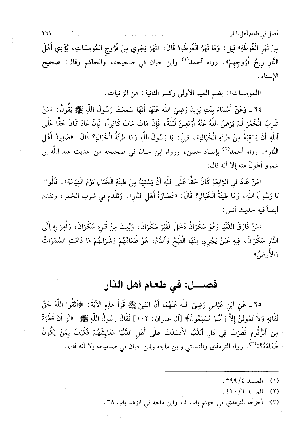 وَتقدم فِي شرب الْخمر وَتقدم أَيْضا فِيهِ حَدِيث أنس من فَارق الدُّنْيَا وَهُوَ سَكرَان دخل الْقَبْر سَكرَان وَبعث من قَبره سَكرَان وَأمر بِهِ إِلَى النَّار سَكرَان فِيهِ عين يجْرِي مِنْهَا الْقَيْح وَالدَّم هُوَ طعامهم وشرابهم مَا دَامَت السَّمَوَات وَالْأَرْض