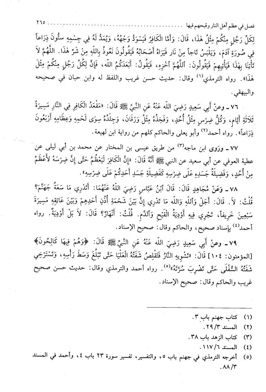 5599 - وَعَن أبي سعيد رَضِي الله عَنهُ عَن النَّبِي صلى الله عَلَيْهِ وَسلم قَالَ مقْعد الْكَافِر فِي النَّار مسيرَة ثَلَاثَة أَيَّام وكل ضرس مثل أحد وَفَخذه مثل ورقان وَجلده سوى لَحْمه وعظامه أَرْبَعُونَ ذِرَاعا