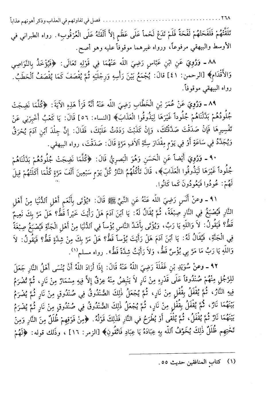 5611 - وَرُوِيَ عَن ابْن عَبَّاس رَضِي الله عَنْهُمَا فِي قَوْله تَعَالَى فَيُؤْخَذ بالنواصي والأقدام الرَّحْمَن 14 قَالَ يجمع بَين رَأسه وَرجلَيْهِ ثمَّ يقصف كَمَا يقصف الْحَطب