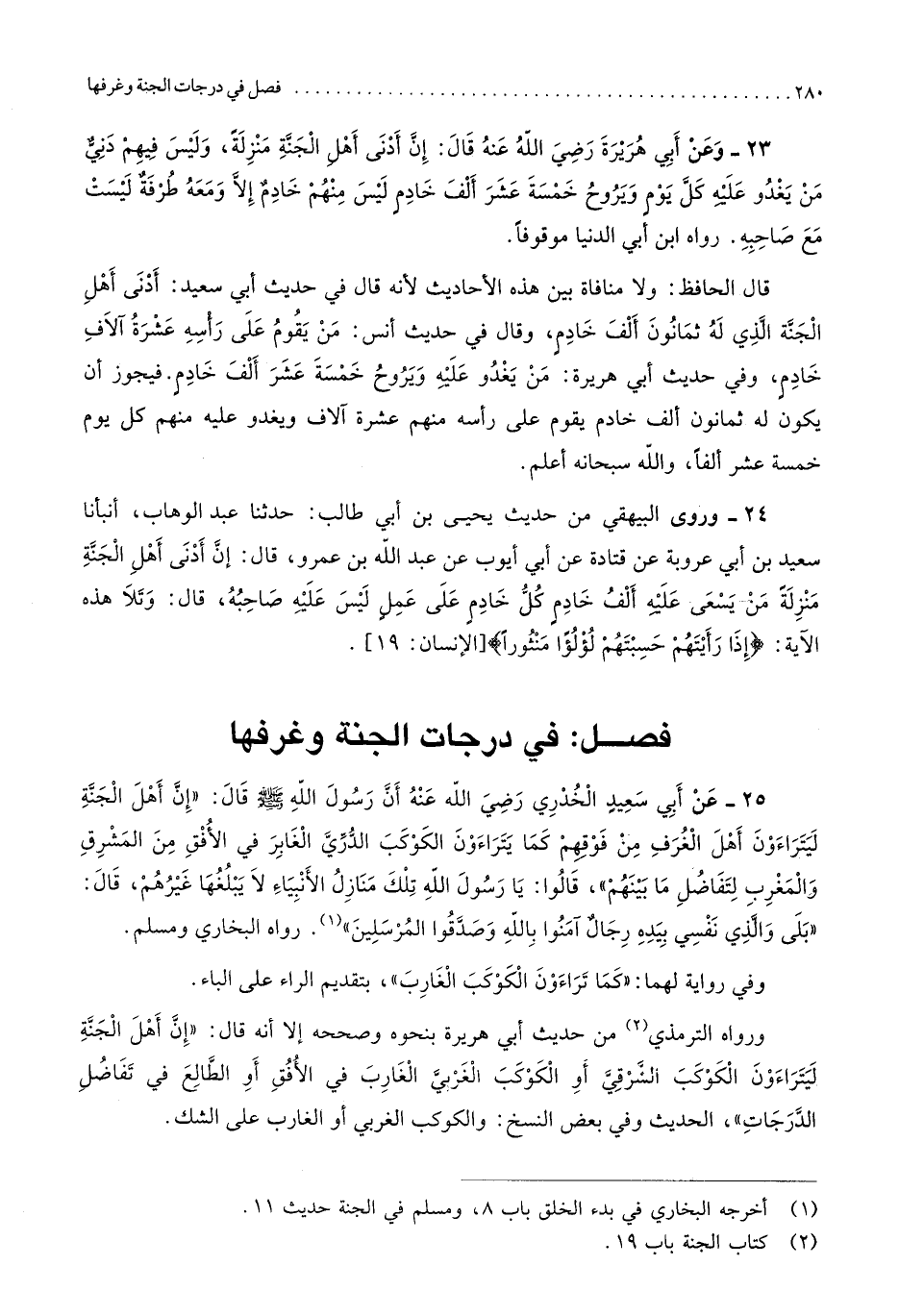 فصل فِي دَرَجَات الْجنَّة وغرفها
