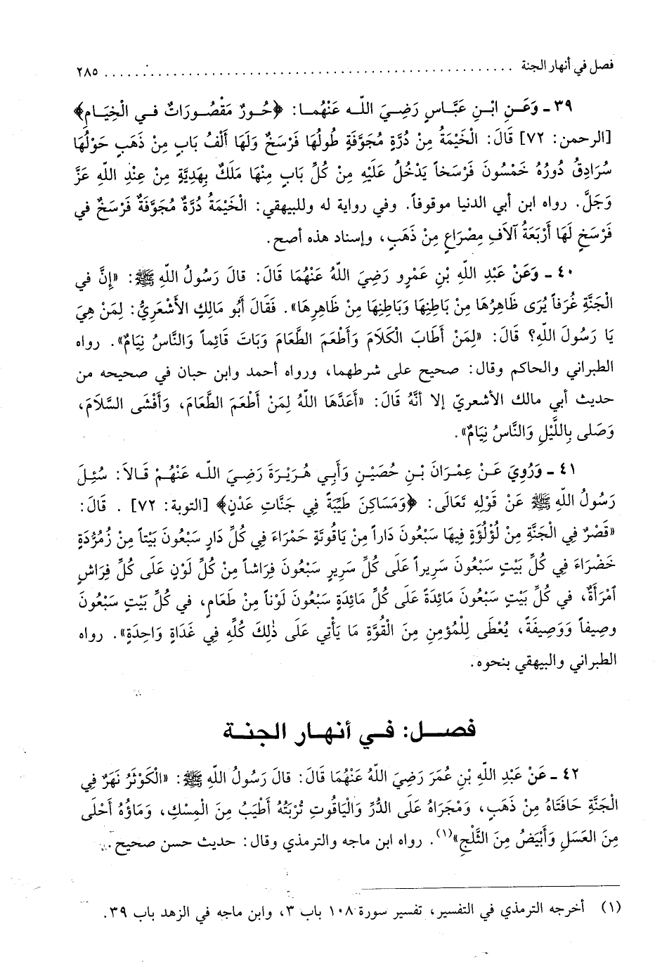 فصل فِي أَنهَار الْجنَّة