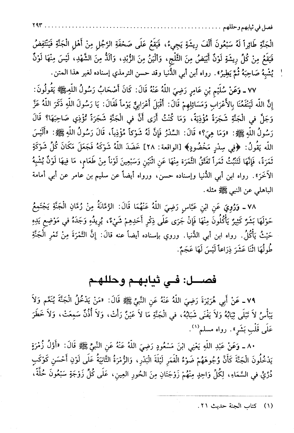 5695 - وَعَن سليم بن عَامر رَضِي الله عَنهُ قَالَ كَانَ أَصْحَاب رَسُول الله صلى الله عَلَيْهِ وَسلم يَقُولُونَ إِن الله لينفعنا بالأعراب ومسائلهم قَالَ أقبل أَعْرَابِي يَوْمًا فَقَالَ يَا رَسُول الله ذكر الله عز وَجل فِي الْجنَّة شَجَرَة مؤذية وَمَا كنت أرى أَن فِي الْجنَّة شَجَرَة تؤذي صَاحبهَا قَالَ رَسُول الله صلى الله عَلَيْهِ وَسلم وَمَا هِيَ قَالَ السدر فَإِن لَهُ شوكا مُؤْذِيًا قَالَ رَسُول الله صلى الله عَلَيْهِ وَسلم أَلَيْسَ الله يَقُول فِي سدر مخضود الْوَاقِعَة 82 خضد الله شوكه فَجعل مَكَان كل شَوْكَة ثَمَرَة فَإِنَّهَا لتنبت ثمرا تفتق الثَّمَرَة مِنْهَا عَن اثْنَيْنِ وَسبعين لونا من طَعَام مَا فِيهَا لون يشبه الآخر