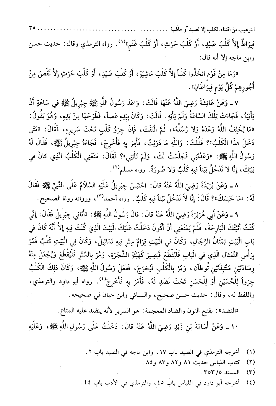 رَوَاهُ التِّرْمِذِيّ وَقَالَ حَدِيث حسن وَابْن مَاجَه إِلَّا أَنه قَالَ وَمَا من قوم اتَّخذُوا كَلْبا إِلَّا كلب مَاشِيَة أَو كلب صيد أَو كلب حرث إِلَّا نقص من أُجُورهم كل يَوْم قيراطان