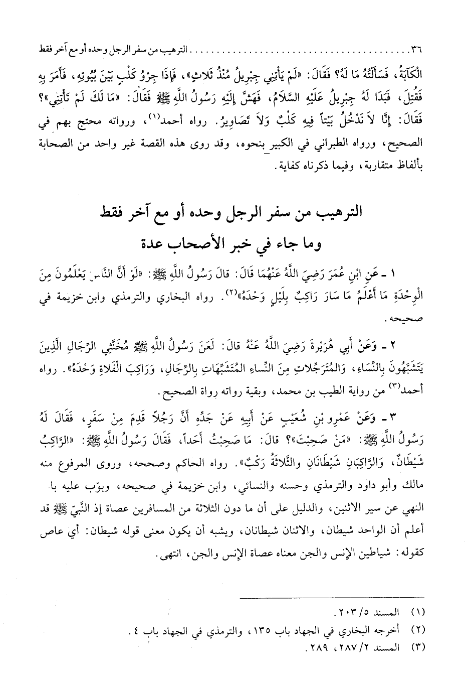 التَّرْهِيب من سفر الرجل وَحده أَو مَعَ آخر فَقَط وَمَا جَاءَ فِي خبر الْأَصْحَاب عدَّة