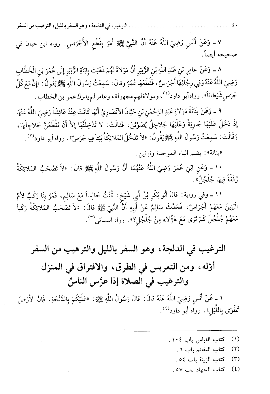 4720 - وَفِي رِوَايَة قَالَ أَبُو بكر بن أبي شيخ كنت جَالِسا مَعَ سَالم فَمر بِنَا ركب لأم الْبَنِينَ مَعَهم أَجْرَاس فَحدث سَالم عَن أَبِيه أَن النَّبِي صلى الله عَلَيْهِ وَسلم قَالَ لَا تصْحَب الْمَلَائِكَة ركبا مَعَهم جلجل كم ترى مَعَ هَؤُلَاءِ من جلجل