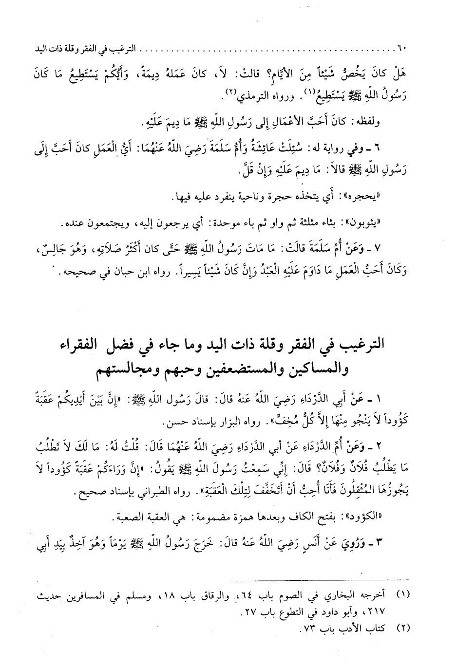 4805 - وَعَن أم الدَّرْدَاء عَن أبي الدَّرْدَاء رَضِي الله عَنْهُمَا قَالَ قلت لَهُ مَا لَك لَا تطلب مَا يطْلب فلَان وَفُلَان قَالَ إِنِّي سَمِعت رَسُول الله صلى الله عَلَيْهِ وَسلم يَقُول إِن وراءكم عقبَة كؤودا لَا يجوزها المثقلون فَأَنا أحب أَن أتخفف لتِلْك الْعقبَة