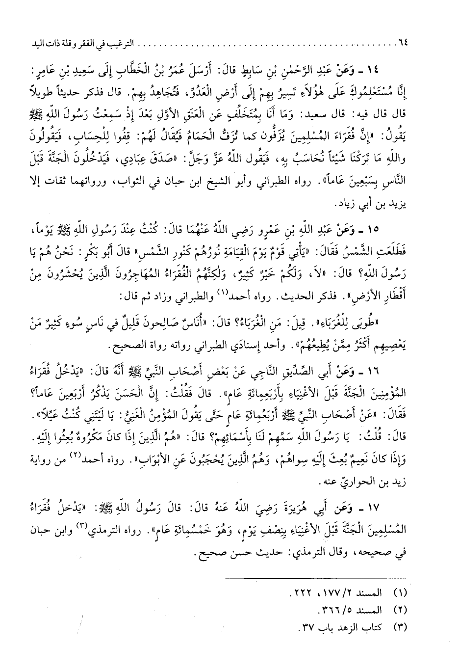 قَالَ فَذكر حَدِيثا طَويلا قَالَ قَالَ فِيهِ قَالَ سعيد وَمَا أَنا بمتخلف عَن الْعُنُق الأول بعد إِذْ سَمِعت رَسُول الله صلى الله عَلَيْهِ وَسلم يَقُول إِن فُقَرَاء الْمُسلمين يزفون كَمَا تزف الْحمام فَيُقَال لَهُم قفوا لِلْحسابِ فَيَقُولُونَ وَالله مَا تركنَا شَيْئا نحاسب بِهِ فَيَقُول الله عز وَجل صدق عبَادي فَيدْخلُونَ الْجنَّة قبل النَّاس بسبعين عَاما