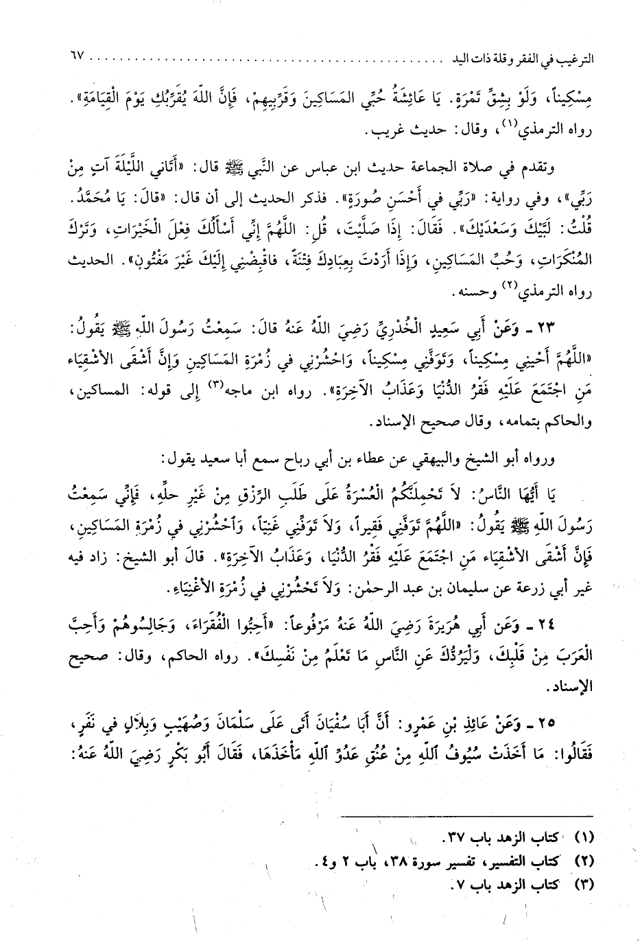 وَرَوَاهُ أَبُو الشَّيْخ وَالْبَيْهَقِيّ عَن عَطاء بن أبي رَبَاح سمع أَبَا سعيد يَقُول يَا أَيهَا النَّاس لَا تحملنكم الْعسرَة على طلب الرزق من غير حلّه فَإِنِّي سَمِعت رَسُول الله صلى الله عَلَيْهِ وَسلم يَقُول اللَّهُمَّ توفني فَقِيرا وَلَا توفني غَنِيا واحشرني فِي زمرة الْمَسَاكِين فَإِن أَشْقَى الأشقياء من اجْتمع عَلَيْهِ فقر الدُّنْيَا وَعَذَاب الْآخِرَة
