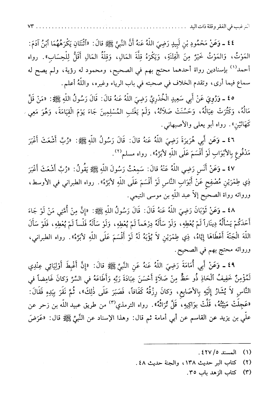 رَوَاهُ أَحْمد بِإِسْنَادَيْنِ رُوَاة أَحدهمَا مُحْتَج بهم فِي الصَّحِيح ومحمود لَهُ رُؤْيَة وَلم يَصح لَهُ سَماع فِيمَا أرى وَتقدم الْخلاف فِي صحبته فِي بَاب الرِّيَاء وَغَيره وَالله أعلم