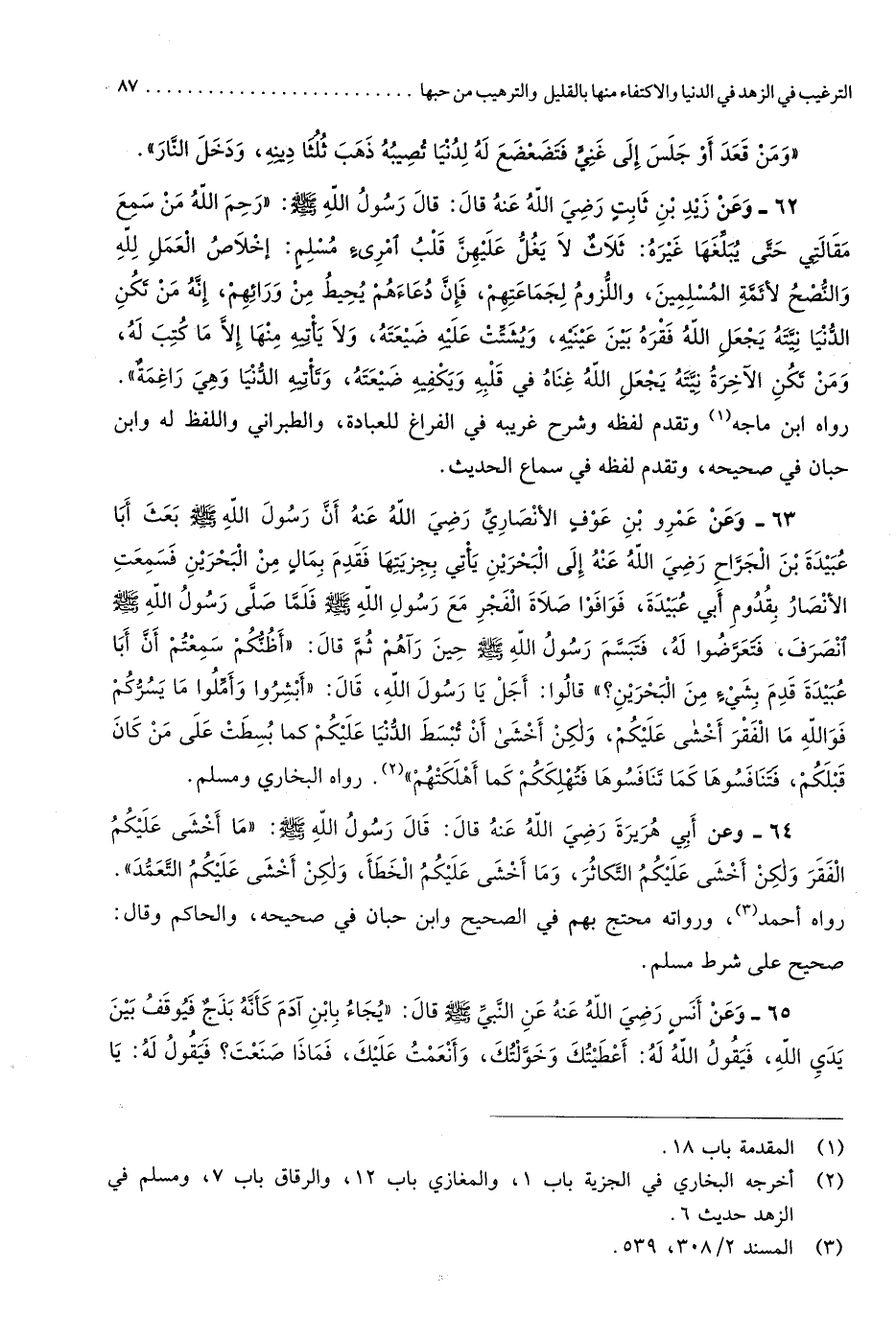 رَوَاهُ ابْن مَاجَه وَتقدم لَفظه وَشرح غَرِيبه فِي الْفَرَاغ لِلْعِبَادَةِ وَالطَّبَرَانِيّ وَاللَّفْظ لَهُ وَابْن حبَان فِي صَحِيحه وَتقدم لَفظه فِي سَماع الحَدِيث
