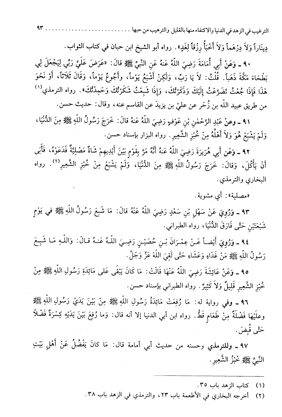 4945 - وَعَن عبد الرَّحْمَن بن عَوْف رَضِي الله عَنهُ قَالَ خرج رَسُول الله صلى الله عَلَيْهِ وَسلم من الدُّنْيَا وَلم يشْبع هُوَ وَلَا أَهله من خبز الشّعير