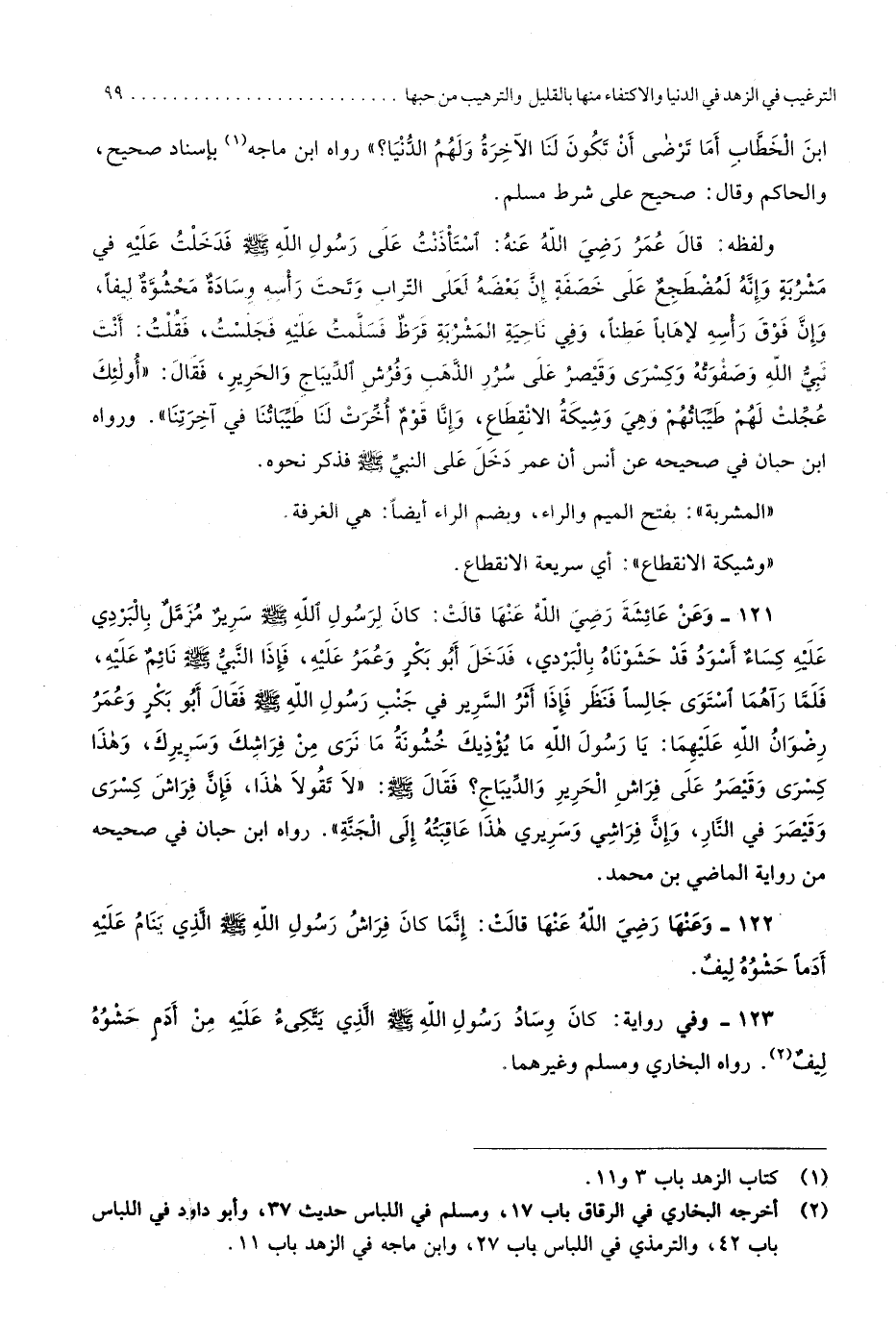 ابْن الْخطاب أما ترْضى أَن تكون لنا الْآخِرَة وَلَهُم الدُّنْيَا رَوَاهُ ابْن مَاجَه بِإِسْنَاد صَحِيح وَالْحَاكِم وَقَالَ صَحِيح على شَرط مُسلم