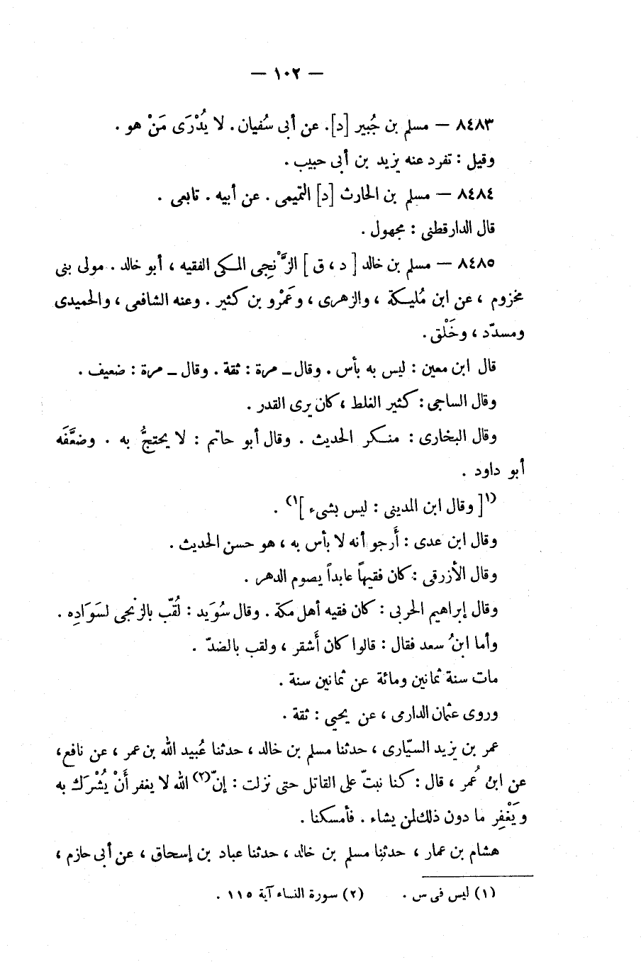 8485 - مسلم بن خالد [د، ق] الزنجي المكي الفقيه، أبو خالد.